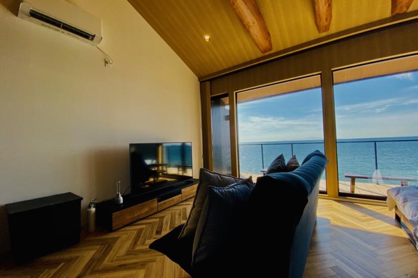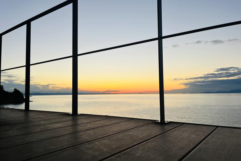 - 大阪から約1時間半。まるで海に浮かんでいるかのような心地よい空間。1日1組だけ、完全プライベート型の一棟貸別荘です。 海側全面に広がる大きな窓ガラスからは瀬戸内海の大海原の景色。お天気の良い日には正面に小豆島が望め、西海岸に沈みゆく夕陽を満喫いただけます。非日常の中に落ち着いた色調のインテリアで統一された寛ぐことのできる空間です。大切な方とゆっくりと流れる”あわじしま時間”をお過ごしください。